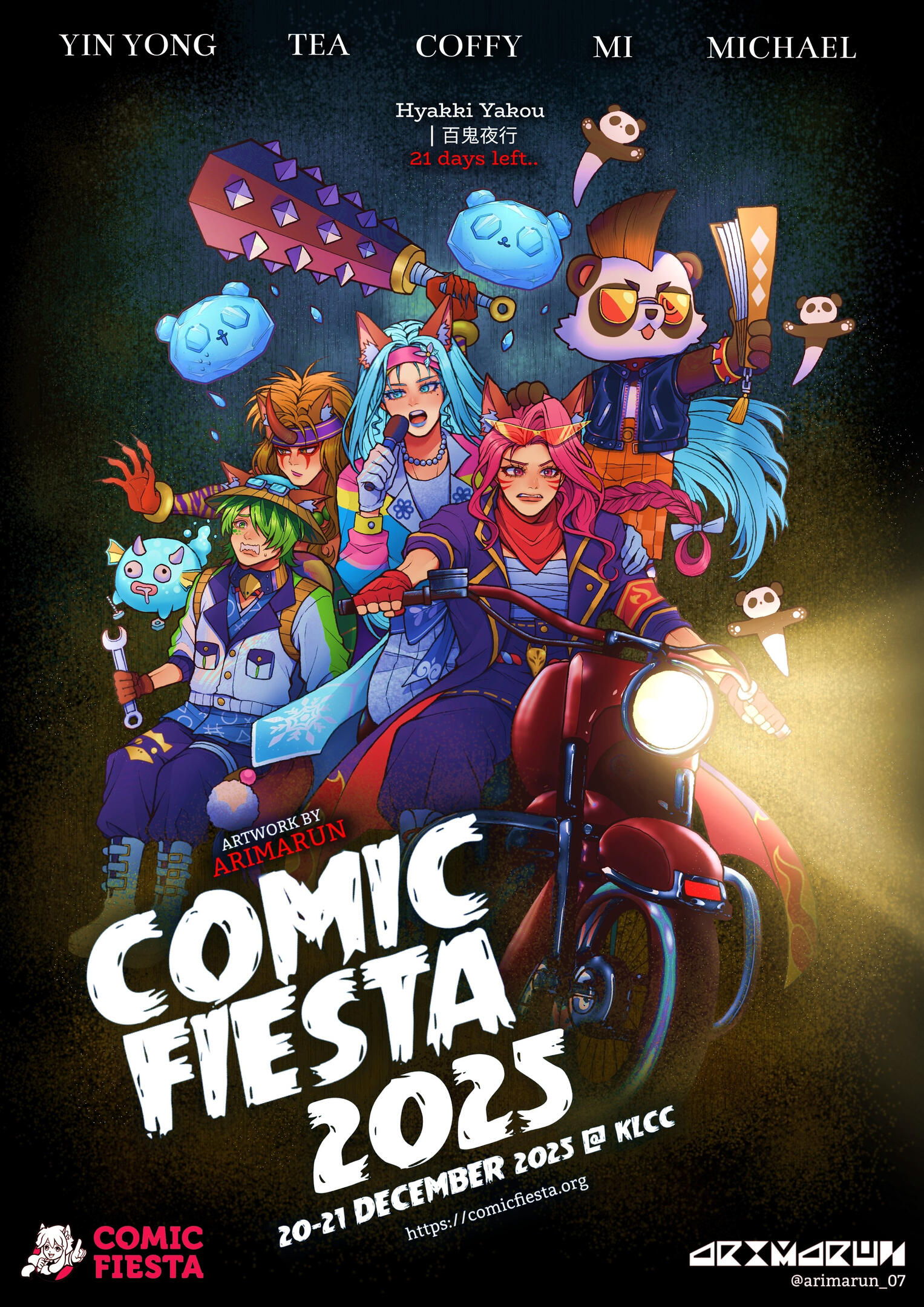 Meo’s art finds its home across social platforms like Facebook, Instagram, X (formerly Twitter), TikTok, and YouTube, where they’ve built a supportive community of followers. Their creative world often revolves around their original project HexatoniX, an indie rock band made up of six characters; Nouri, Kai, Aina, L, Hairi, and Rosie, along with their mascots Ari and Mar, who act as guardians of their life journey. And while original characters are their main focus, Meo also delights in exploring fandoms such as Vocaloid (especially Miku), Genshin Impact, Vtubers, and JoJo’s Bizarre Adventurein creating fan arts.Beyond their personal projects, Meo has reached some exciting milestones in Malaysia’s art scene. In 2024, their illustrations were featured as official Vtuber Showcase standees for Jun Yong-Ho (@66JunVT) and Hora Horangi (@HoraHorangiVT) at Animangaki, one of the country’s biggest ACG conventions. That same year, the year before and this year, they were also part of Comic Fiesta’s 100 Days Countdown, a massive community project where their artwork was displayed physically during the event. On top of that, Meo has brought their craft to local university events, hosting live commission booths and selling art prints, creating opportunities to connect directly with fans and clients.What makes Meo’s journey inspiring is their constant drive to learn and grow, even while balancing the life of a full-time student. With a deep passion for storytelling through characters and a commitment to pushing their art further, Meo is an artist whose path is just beginning and one worth following as they continue to share their creativity with the world.